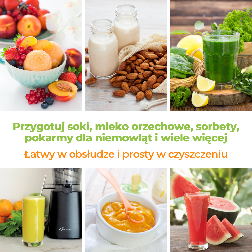 WSZECHSTRONNE: Nadaje się do przygotowywania soków, sorbetów, mleka orzechowego, koktajli mlecznych, jedzenia dla niemowląt, masła orzechowego i smoothie!